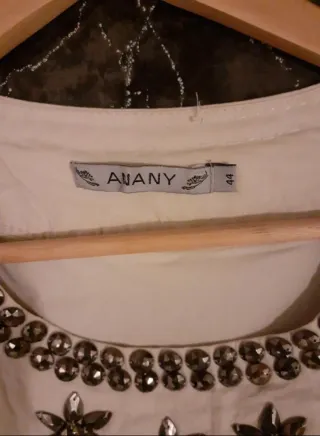 Vestido de la marca Anany con un diseño elegante y detalles únicos. - Adorno de pedrería en el cuello. - Detalle de flores bordadas en el escote. - Borde inferior adornado con pedrería.