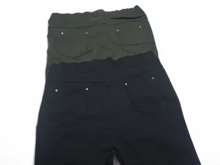 2 pares de Leggings de vestir Uno negro, otro verde oscuro. Bolsillos y ribetes dorados. Leggings de invierno, forrados.