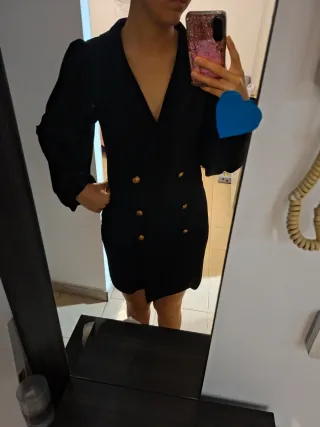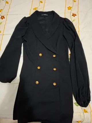 Elegante vestido estilo blazer con manga larga. - Diseño cruzado con botones dorados. - Corte moderno y favorecedor.