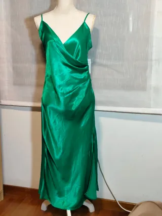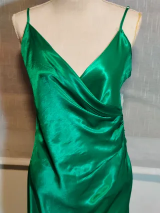 Elegante vestido largo con tirantes finos y un favorecedor escote cruzado. - Diseño cruzado. - Largo hasta el tobillo. - Tejido satinado brillante.
