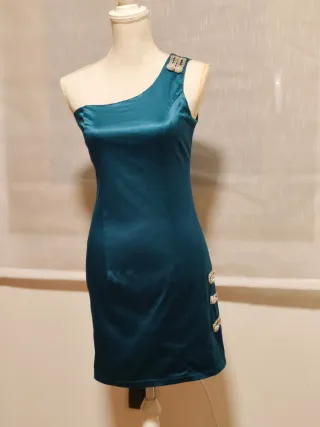 Vestido ajustado de tela elástica con detalles de abalorios. - Diseño de un solo hombro. - Abalorios decorativos en el hombro y el lateral.