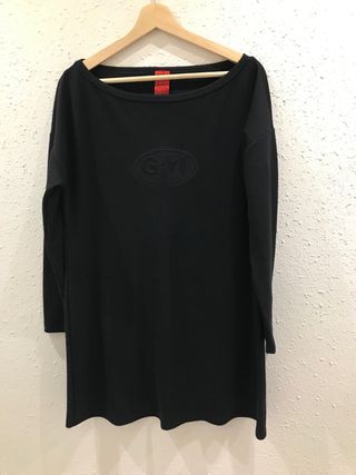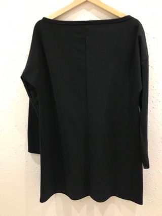 vestido de punto negro de talle recto mide: hombros 62, cintura 51, cadera 56,largo 88