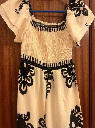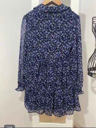 Vestido de Zara con estampado floral. - Diseño con escote en V. - Mangas largas abullonadas. - Falda con vuelo y detalle de volantes. Es una Talla XS (pero puede valer para una Talla S).