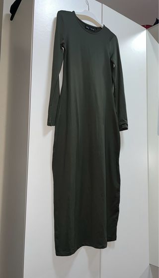 Vestido largo de manga larga en un bonito tono verde oliva y hace buena figura - Diseño elegante y versátil. - Tejido suave y cómodo.