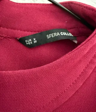 Vestido de la marca Sphera, sin estrenar. - Diseño bicolor en rojo y negro. - Cinturón negro con detalle de botones plateados. - Cremallera trasera.