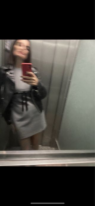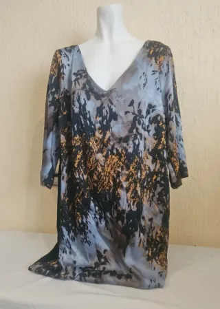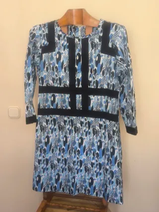 Vestido de Zara con un diseño original y llamativo. - Manga larga. - Escote en V. - Estampado abstracto en tonos grises y ocres.