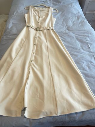 Vestido de la marca Zara en color beige. Ideal para cualquier ocasión. - Talla S (36/8). - Fabricado en Turquía.