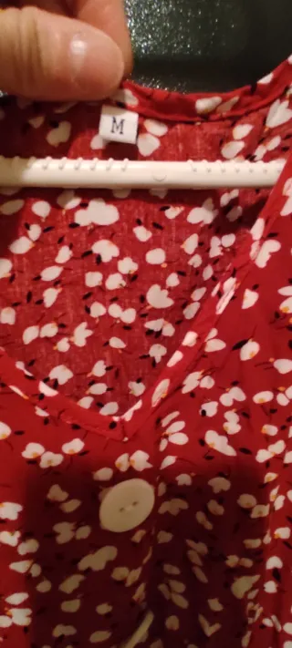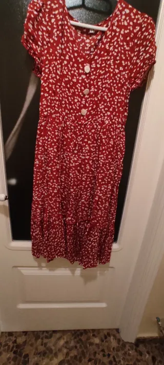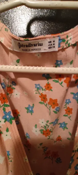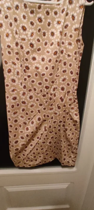 Vestido cuello pico de mango. Estampado de flores. Media manga. Como nuevo.