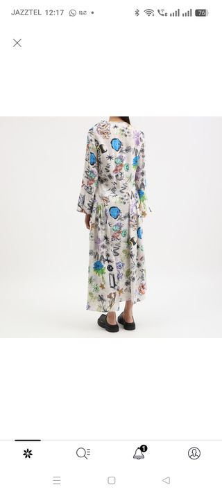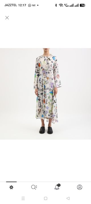 Vestido largo con un estampado vibrante y original. - Diseño de manga larga. - Corte fluido y cómodo. - Estampado con motivos florales y abstractos.