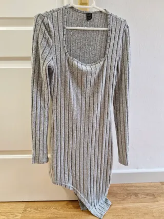 Vestido de canalé con un diseño moderno y favorecedor. - Manga larga. - Escote cuadrado. - Bajo asimétrico.