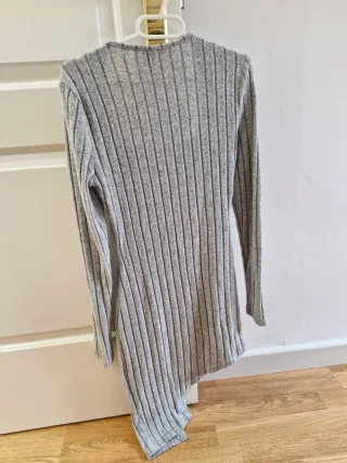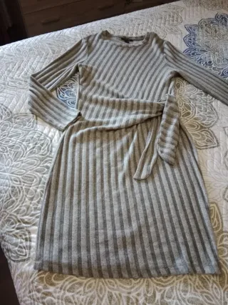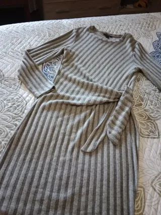 Vestido midi canalé de mujer y un cinturón para anudar que estiliza muchísimo. - Manga larga. - Tejido de punto acanalado. Talla S/M