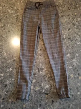 Pantalón de vestir con un diseño a cuadros. Es cómodo y versátil. - Estampado de cuadros. - Cintura con cordón ajustable. - Puños elásticos en los tobillos.