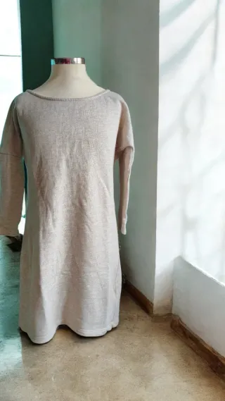 Vestido de invierno con mangas largas. Su diseño es cómodo y versátil. - Cuello barco. - Puños ajustados en las mangas. - Bajo del vestido con elástico. - Mangas anchas con frunce en el puño