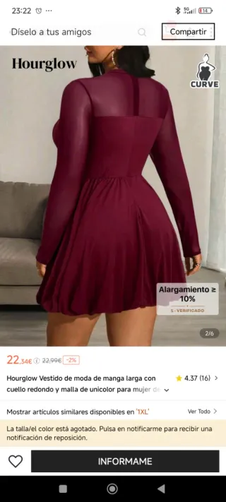 Vestido de moda de manga larga con cuello redondo. - Diseño de malla. - Estampado de unicolor.