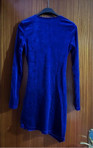 Vestido de manga larga con un diseño cruzado y drapeado. - Tejido de terciopelo. - Escote en V. - Detalle fruncido en el lateral.