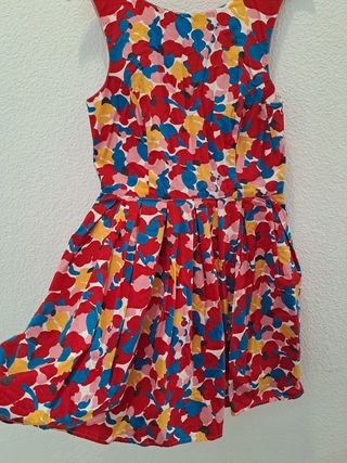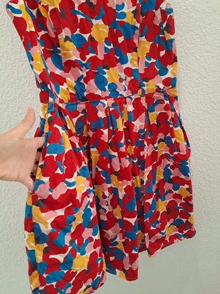 Precioso vestido de verano, ideal para cualquier ocasión. Es de corte acampanado y sin mangas, y tiene un lazo en la espalda y cierta parte queda descubierta, espectacular!! - Diseño alegre y colorido con estampado de flores. - Confeccionado en una tela ligera y fresca. - Perfecto para lucir en primavera o verano.
