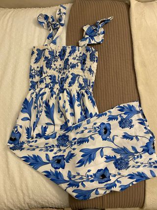 Vestido largo con estampado floral. Talla XS Usado una vez. Fruncido en el pecho, tirantes ajustables.