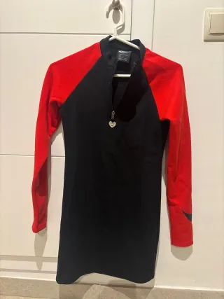 Vestido deportivo Nike con diseño de bloques de color. - Mangas largas en contraste. - Cierre de media cremallera en el cuello. - Detalle de logo en la manga.