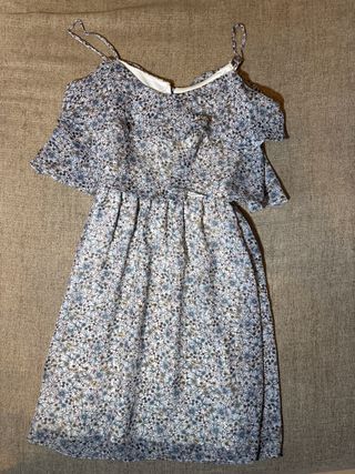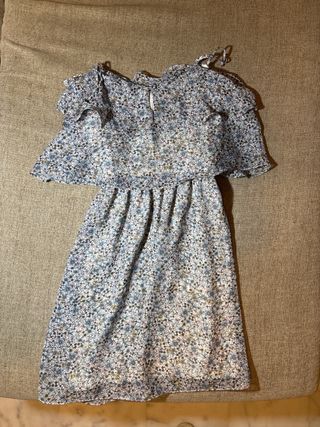 Vestido corto con estampado floral. Está marcado como 42 pero es como para un 38, es muy chico para la talla marcada, lo está usado, solo le corté los tirantes para colgarlo en la percha. - Manga corta abullonada. - Cuello en V. - Cierre de botones delanteros.