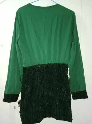 Vestido de fiesta Guess con detalles brillantes. - Mangas largas de malla. - Diseño con lentejuelas verticales. - Cremallera central. -con Forro -talla XS Ideal para nochevieja, navidad, cenas, comidas, eventos
