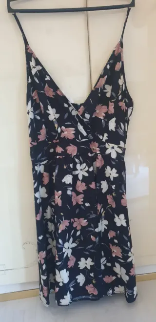Vestido de verano con estampado floral. Ideal para días cálidos. - Diseño con tirantes finos. - Escote en pico. - Corte cruzado en la parte delantera. - Falda con vuelo.
