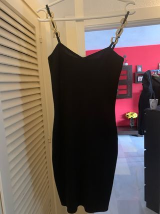 Vestido negro con tirantes de cadena