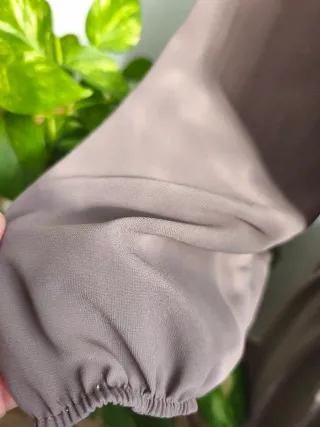 Conjunto de dos prendas de vestir. - Camisa beige de encaje con cuello fabricada en poliéster, ideal. Medidas en fotos. Talla S. - Blusa marrón sin mangas con volantes fabricada en algodón. Es una S o más bien M porque es flojita. De REGALO 🎁.