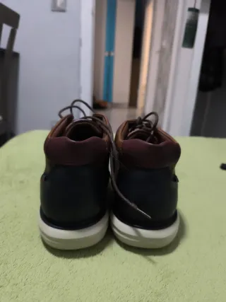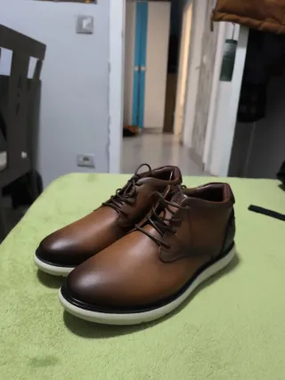 Elegantes botas de vestir de cuero. - Diseño tipo botín. - Cordones para ajuste. - Suela de goma blanca.