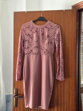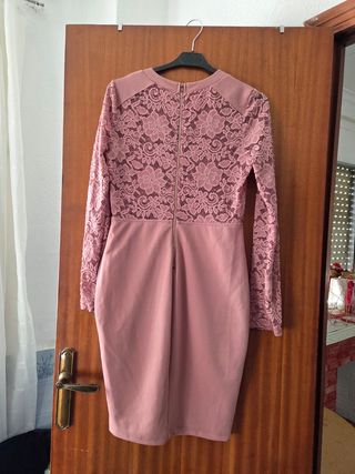 Vestido rosa encaje manga larga