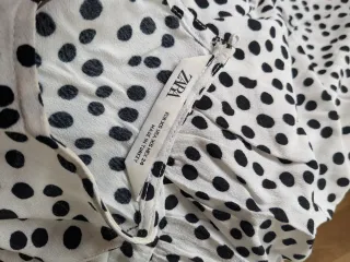 Vestido largo con estampado de topitos en blanco y negro. Diseño fluido y elegante. Talla XS perfecto estado. - Manga larga. - Cuello redondo.
