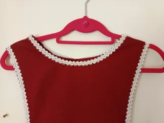 Sobre vestido medieval en color teja (rojo anaranjado) con remates vivos en color blanco en cuello y sisa. Para poner con camisa debajo. Mucha caída, queda muy bonito. Medidas en fotos, viene a ser una talla S. Nunca usado.