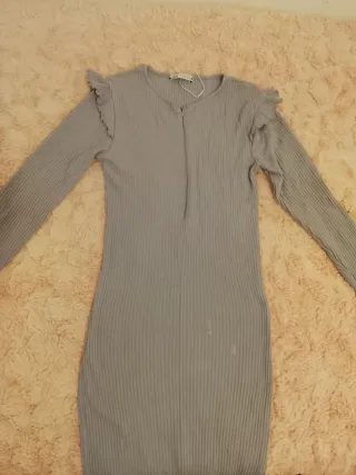 Vestido gris de canalé con volantes