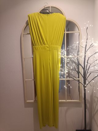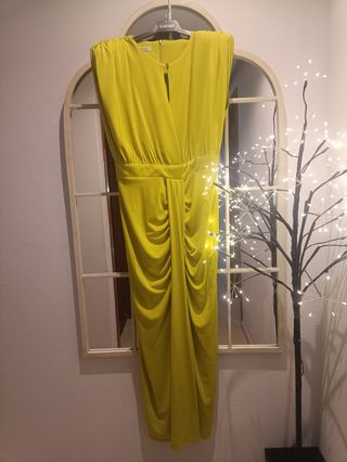 Precioso vestido largo de color verde lima, ideal para cualquier ocasión. Es una prenda elegante y sofisticada, perfecta para lucir radiante. - Diseño favorecedor. - Tejido fluido y agradable al tacto. - Corte elegante.