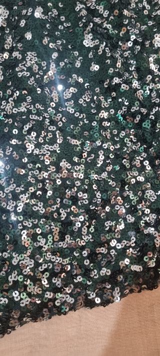 Precioso vestido corto de lentejuelas, ideal para una ocasión especial. ✨ - Escote asimétrico. - Manga larga. - Acabado brillante y elegante. - Talla única. - Es precioso y queda muy bien - Un solo uso