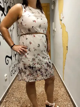 Pack de cuatro vestidos para mujer. Las tallas son M/L aunque la modelo es la misma y le vienen bien ambos. Están en muy buen estado todos ellos. - Diseño con estampado de mariposas y flores. - Cinturón trenzado incluido. - Mangas cortas.