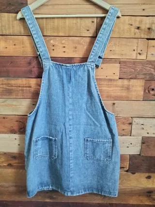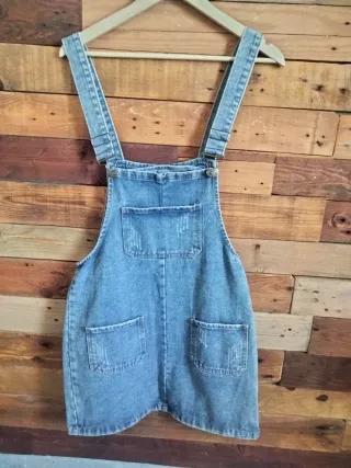 Vestido vaquero de estilo peto, perfecto para un look casual. Está en perfecto estado - Diseño con tirantes ajustables. - Bolsillos delanteros. - Bolsillos laterales. - Acabado desgastado.