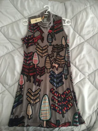 Vestido con un diseño vibrante y colorido característico de la marca. - Mangas largas. - Estampado frontal llamativo. - Largo hasta la rodilla.