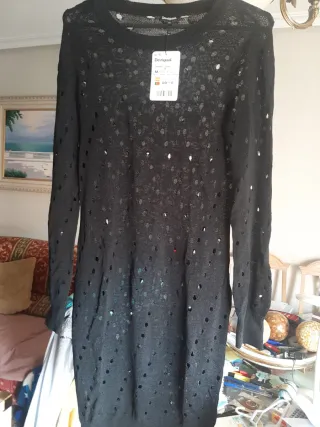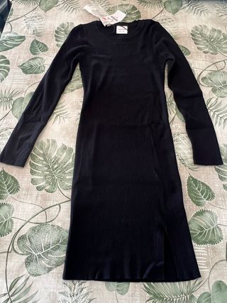 Vestido de punto acanalado en color negro. - Diseño de manga larga. - Cuello redondo. Con etiqueta. Fue un regalo y se me pasó el tiempo de devolución.