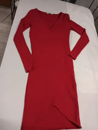 Vestido de Zara con un bonito estampado floral bordado. - Diseño con cuello redondo y manga corta. - Tejido con textura y caída. - Estampado en tonos rojos y blancos. En la talla pone XL pero da más talla ( medidas en ultimas fotos)