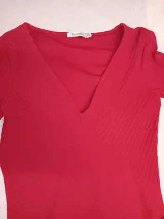Precioso vestido rojo de verano, ideal para cualquier ocasión. Es de un tejido suave y ligero, perfecto para los días calurosos. - Escote redondo con detalle de volantes. - Manga corta. - Corte amplio y fluido. - cortopor encima de la rodilla.