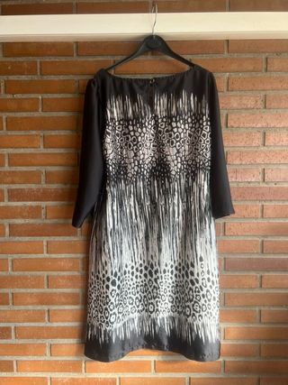 Vestido de estampado leopardo, ideal para la temporada de invierno. Su diseño con manga larga lo hace perfecto para mantenerte abrigada con estilo. - Estampado animal print. - Manga larga. - Corte acampanado. Ref. 32847