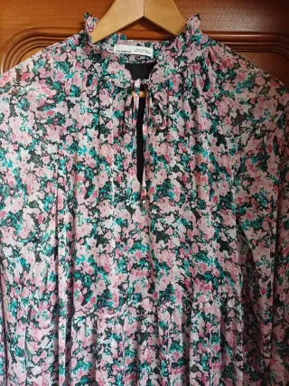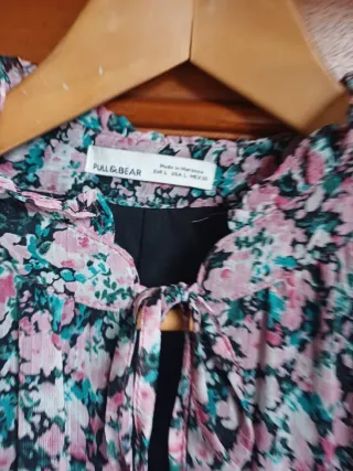 Vestido de la marca Pull&Bear con un estampado floral vibrante. - Diseño con cuello alto y lazada. - Mangas largas. - Tejido ligero y vaporoso.