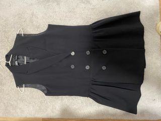 Vestido corto de Zara en color negro. Diseño elegante y moderno. - Sin mangas. - Doble botonadura. - Detalle fruncido en cintura y bajo.