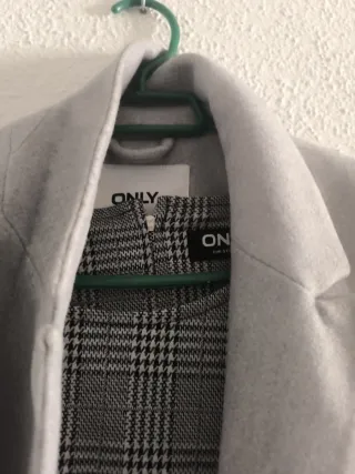 Conjunto de abrigo y vestido, ideal para la temporada de otoño e invierno. El abrigo es de color gris y el vestido tiene un estampado de cuadros. - Abrigo de corte clásico. - Vestido con estampado de cuadros. -Vestido manga 3/4 -Usado 2 veces