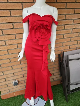 Vestido de fiesta rojo con flor