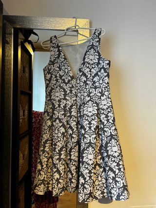 Elegante vestido corto sin mangas, ideal para ceremonias o eventos especiales. Su diseño estampado le da un toque único. - Corte favorecedor. - Estampado llamativo. - Tejido de calidad.