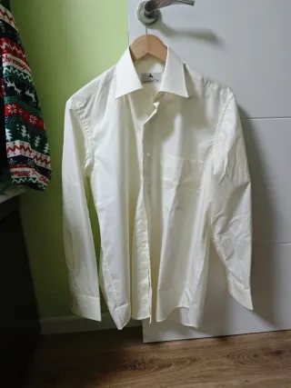 Camisa de vestir de manga larga con un corte clásico y elegante. Perfecta para ocasiones formales o para el día a día. Sin estrenar, las 2 unidades. - Cuello camisero. - Cierre de botones. - Bolsillo en el pecho.
