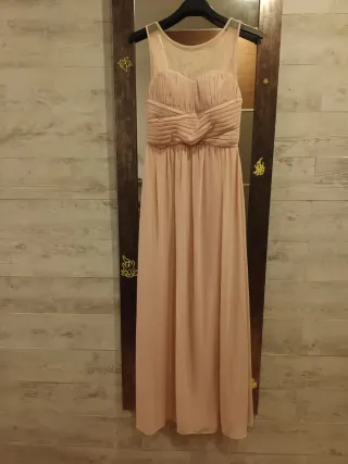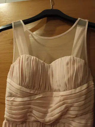 Elegante vestido largo, ideal para ceremonias. Fórmula Joven del corte inglés. Ideal puesta de largo y ceremonia - Diseño con escote ilusión y cuerpo drapeado. - Falda fluida y larga. - Sin mangas. - Cremallera invisible en la espalda - Forrado el cuerpo. - Forro en la falda. Todo unido en una pieza. - Tejido tipo gasa Solo utilizado en una ocasión No retocado, medidas originales