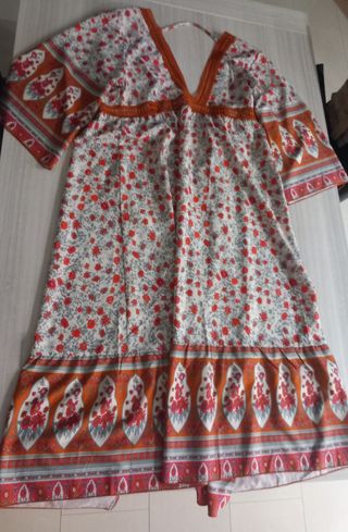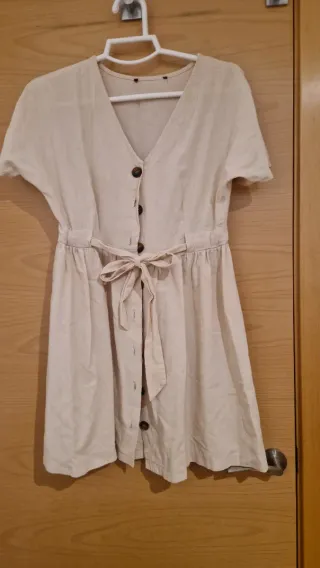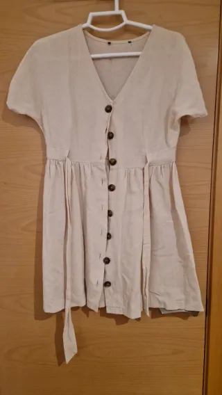 Vestido de lino con cinturón. Si mides 1,70 queda muy cortito del culo. - Diseño con botones. - Manga corta. - Cinturón a juego.