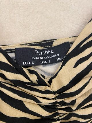 Vestido corto con estampado de cebra de Bershka. Tirantes finos y corte ajustado.
